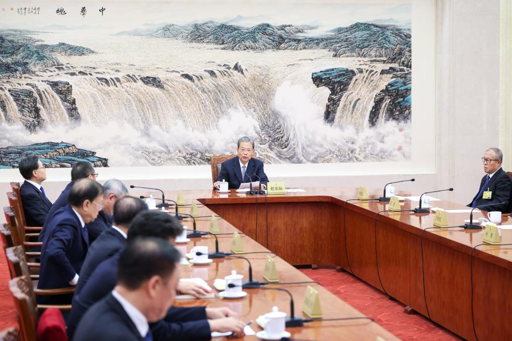 Zhao Leji, chairman of the 14th NPC Standing Committee, presided over the session's plenary meetings and meetings of the Council of Chairpersons during the first day of the session.