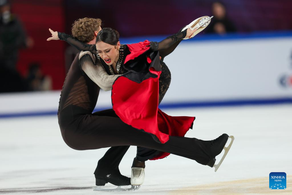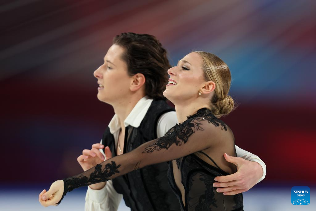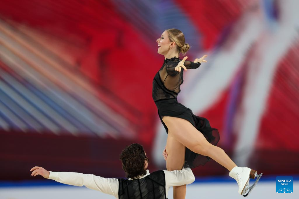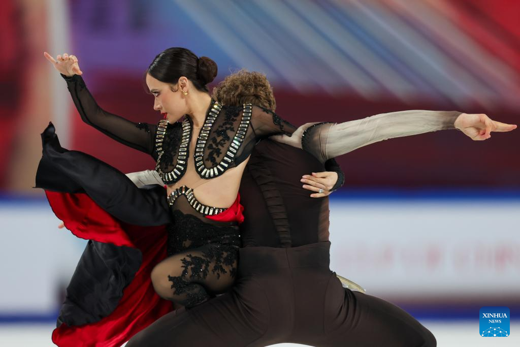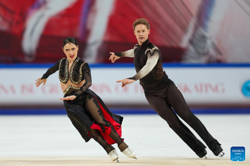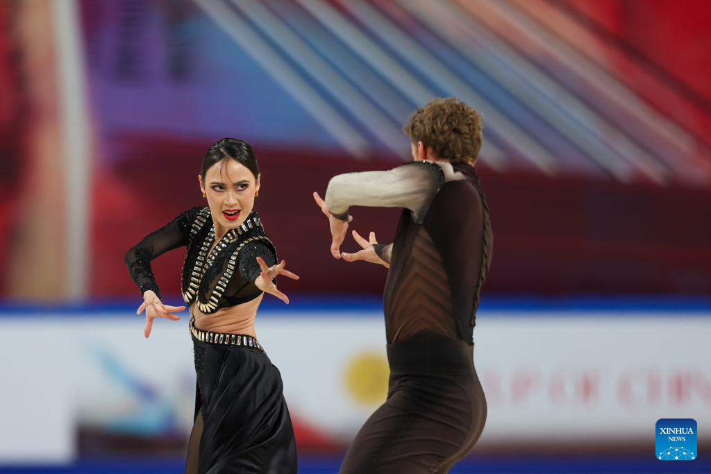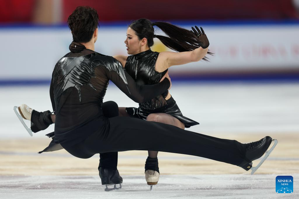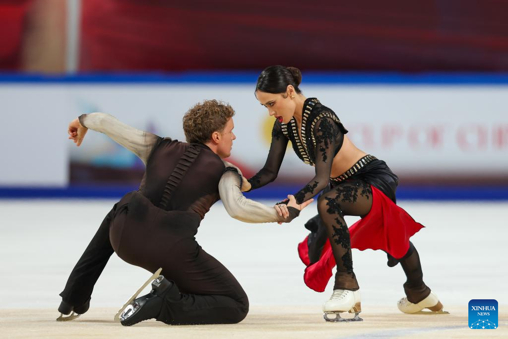 Madison Chock (R)/Evan Bates of the United States perform during the ice dance free dance at the Cup of China ISU Grand Prix of Figure Skating 2025 in southwest China's Chongqing Municipality, Oct. 25, 2025. (Xinhua/Huang Wei)