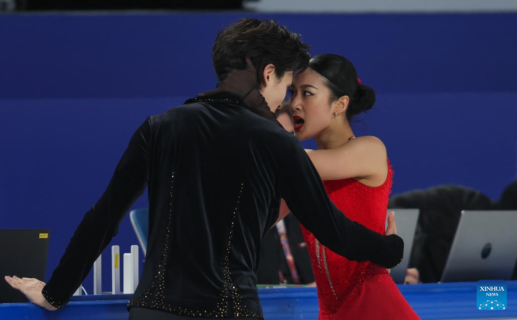Wang Shiyue (R)/Liu Xinyu of China perform during the ice dance free dance at the Cup of China ISU Grand Prix of Figure Skating 2025 in southwest China's Chongqing Municipality, Oct. 25, 2025. (Xinhua/Huang Wei)