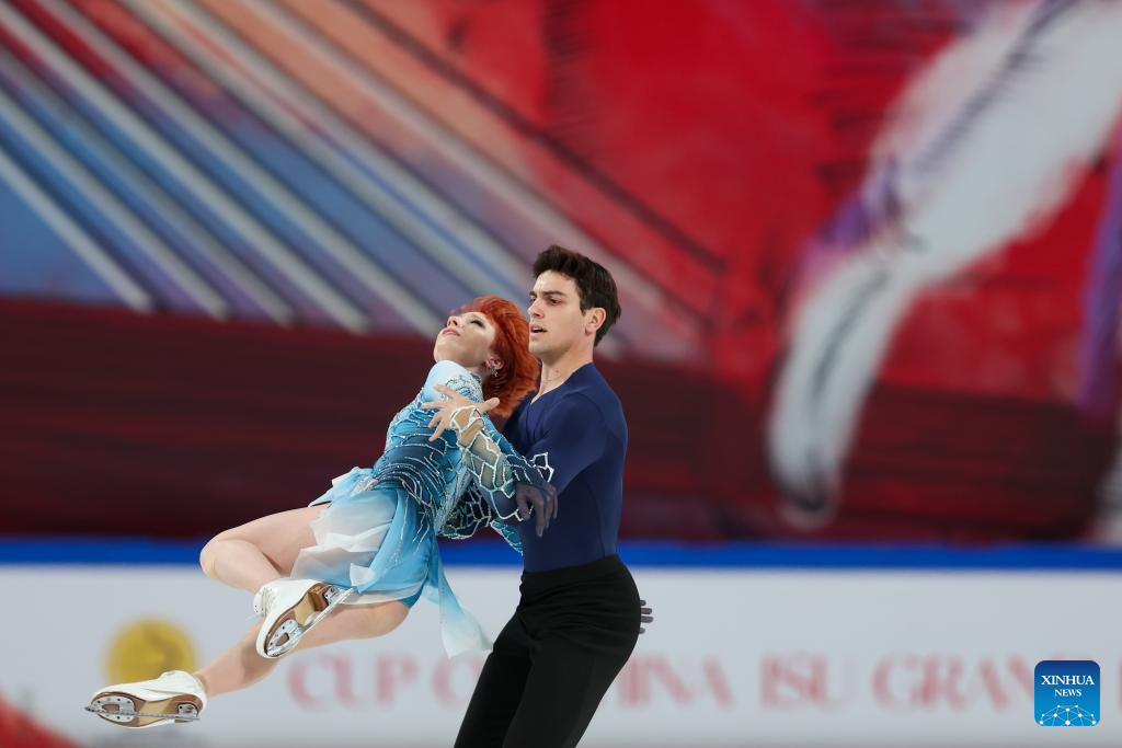 Evgeniia Lopareva (R)/Geoffrey Brissaud of France perform during the ice dance free dance at the Cup of China ISU Grand Prix of Figure Skating 2025 in southwest China's Chongqing Municipality, Oct. 25, 2025. (Xinhua/Huang Wei)