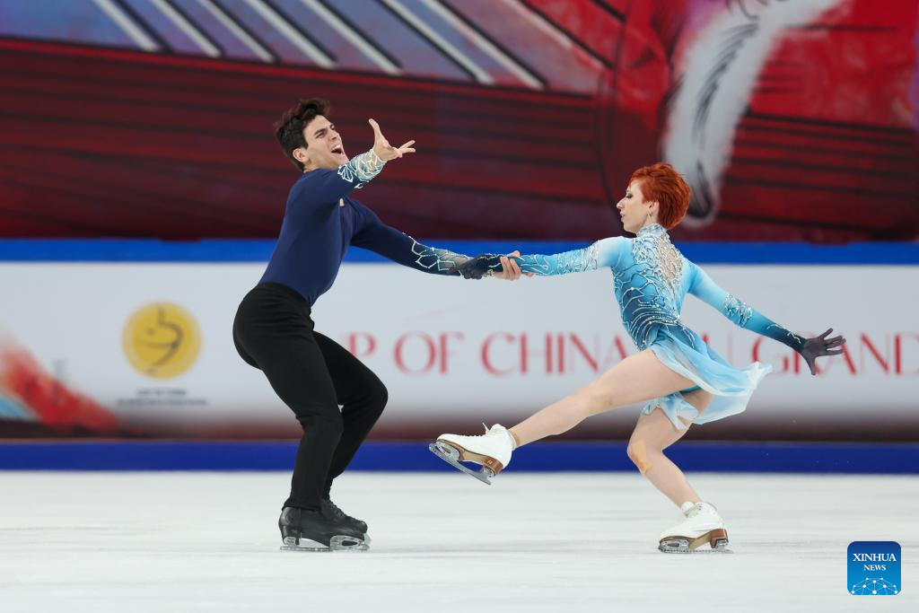 Emilea Zingas (R)/Vadym Kolesnik of the United States perform during the ice dance free dance at the Cup of China ISU Grand Prix of Figure Skating 2025 in southwest China's Chongqing Municipality, Oct. 25, 2025. (Xinhua/Huang Wei)