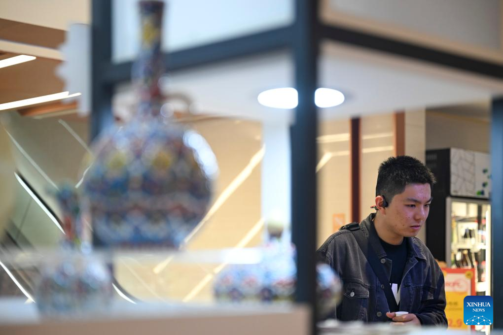 A man selects products at the CIIE Bazaar City Arena in east China's Shanghai, Nov. 1, 2025. The 8th China International Import Expo (CIIE) is scheduled to take place here from Nov. 5 to 10. (Xinhua/Chen Haoming)