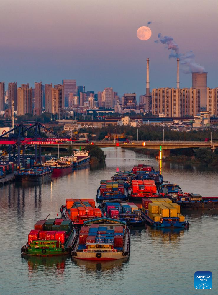 A drone photo taken on Nov. 5, 2025 shows a full moon hanging over the Beijing-Hangzhou Grand Canal in Huai'an City, east China's Jiangsu Province. Lunar observers will be able to see the largest and brightest full moon of 2025 when the moon reaches its closest point to Earth at 9:19 p.m. Beijing Time on Wednesday. (Photo by He Jinghua/Xinhua)