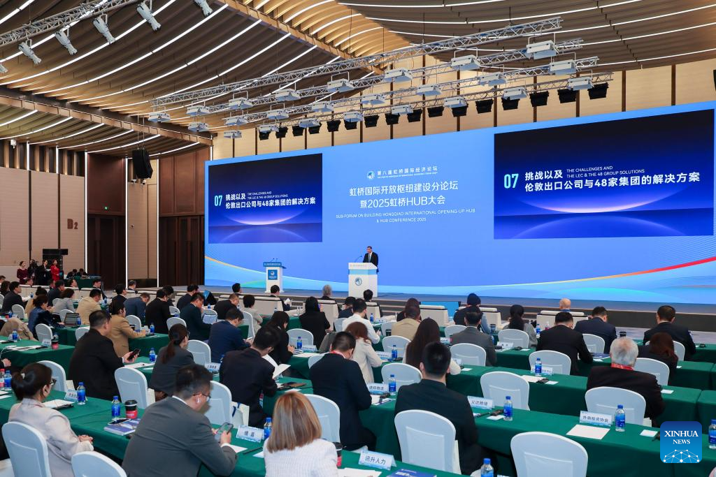 The Sub-forum on Building Hongqiao International Opening-up Hub and Hub Conference 2025 is held during the 8th Hongqiao International Economic Forum at the National Exhibition and Convention Center (Shanghai) in Shanghai, east China, Nov. 6, 2025. (Xinhua/Wang Xiang)