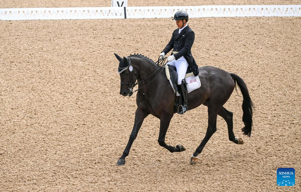Liu Tao of Xinjiang competes during the equestrian dressage team final at China's 15th National Games in Shenzhen, south China's Guangdong Province, Nov. 10, 2025. (Xinhua/Lian Zhen)