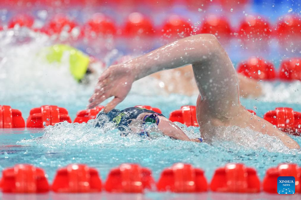 Li Bingjie of Hebei competes during the women's 1500m freestyle final of swimming at China's 15th National Games in Shenzhen, south China's Guangdong Province, Nov. 12, 2025. (Xinhua/Xue Yuge)