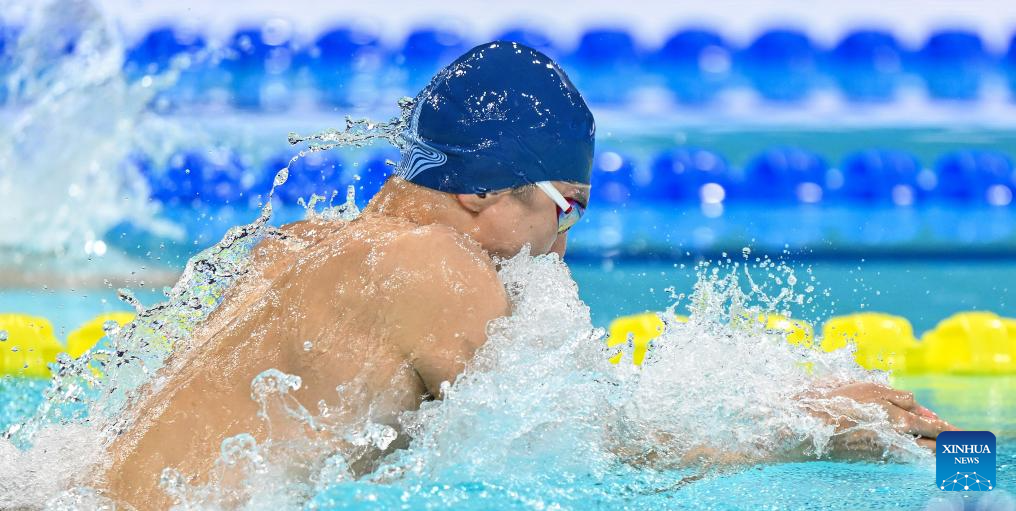 Pan Zhanle of Zhejiang competes during the men's 200m freestyle final of swimming at China's 15th National Games in Shenzhen, south China's Guangdong Province, Nov. 12, 2025. (Xinhua/Xue Yuge)