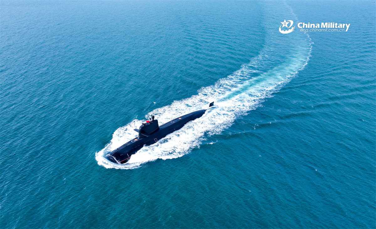 A submarine attached to a naval unit under the Chinese PLA Northern Theater Command steams in the sea during a maritime training exercise. (eng.chinamil.com.cn/Photo by Shi Jialong)
