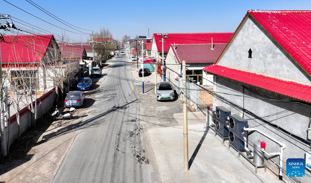 This drone photo taken on Nov. 27, 2025 shows Yuanyi Village, where a clean heating renovation program is underway, of Tongxin County, Wuzhong City, northwest China's Ningxia Hui Autonomous Region. Located in the arid central region of Ningxia, Tongxin County has enabled 28,000 rural households to switch to clean heating through a rural clean heating renovation program and a supporting "coal-to-electricity" project. (Xinhua/Yang Zhisen)