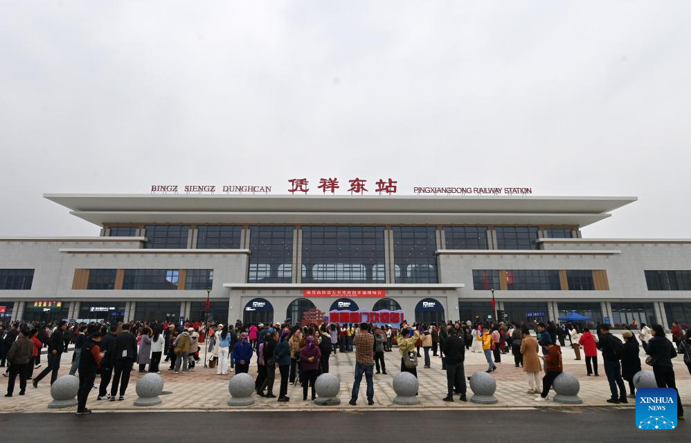This photo taken on Dec. 5, 2025 shows an exterior view of Pingxiang East Railway Station, in Pingxiang City, south China's Guangxi Zhuang Autonomous Region. The Chongzuo-Pingxiang section of the Nanning-Pingxiang Railway began operation on Friday, marking the full operation of the high-speed railway, which connects the region's capital city Nanning to the border city Pingxiang. (Xinhua/Lu Boan)