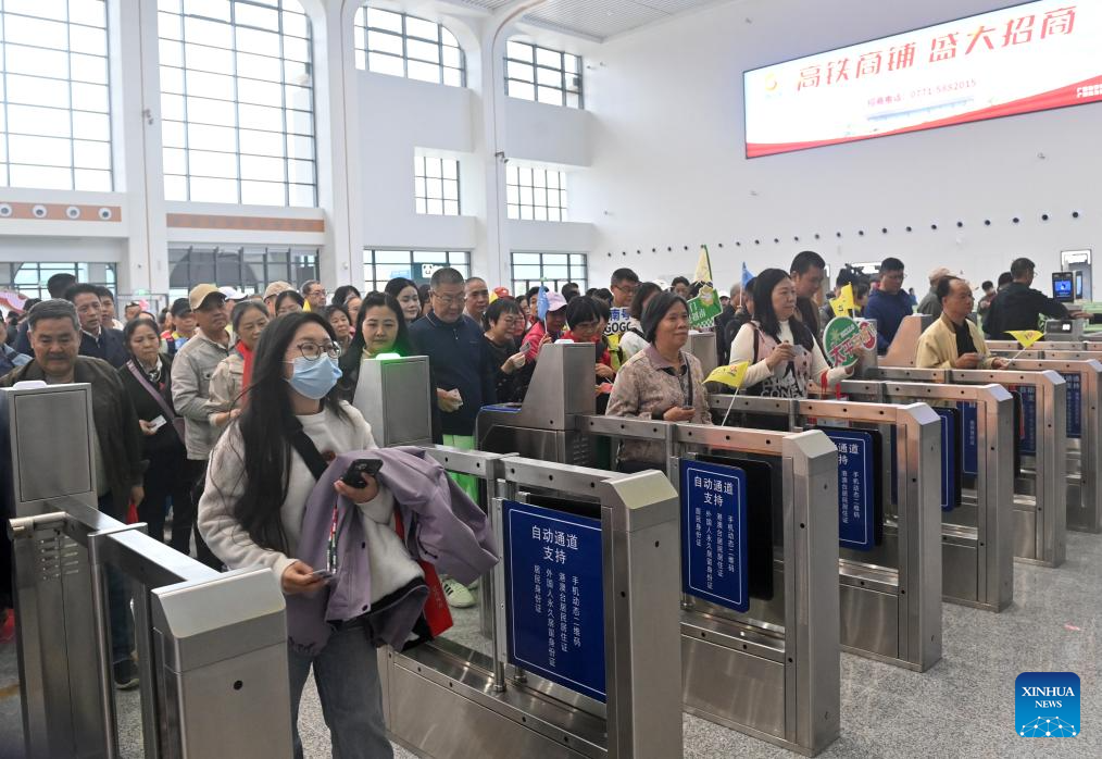 Passengers pass through the ticket gates at Pingxiang East Railway Station, in Pingxiang City, south China's Guangxi Zhuang Autonomous Region, on Dec. 5, 2025. The Chongzuo-Pingxiang section of the Nanning-Pingxiang Railway began operation on Friday, marking the full operation of the high-speed railway, which connects the region's capital city Nanning to the border city Pingxiang. (Xinhua/Lu Boan)