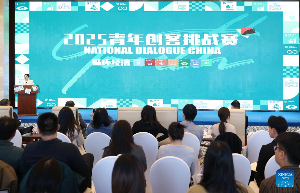 This photo shows the opening ceremony of the 2025 National Dialogue China in Beijing, capital of China, Dec. 5, 2025. The event kicked off here on Friday, underscoring the growing role of China's young entrepreneurs in leading the country's transition toward a circular economy.