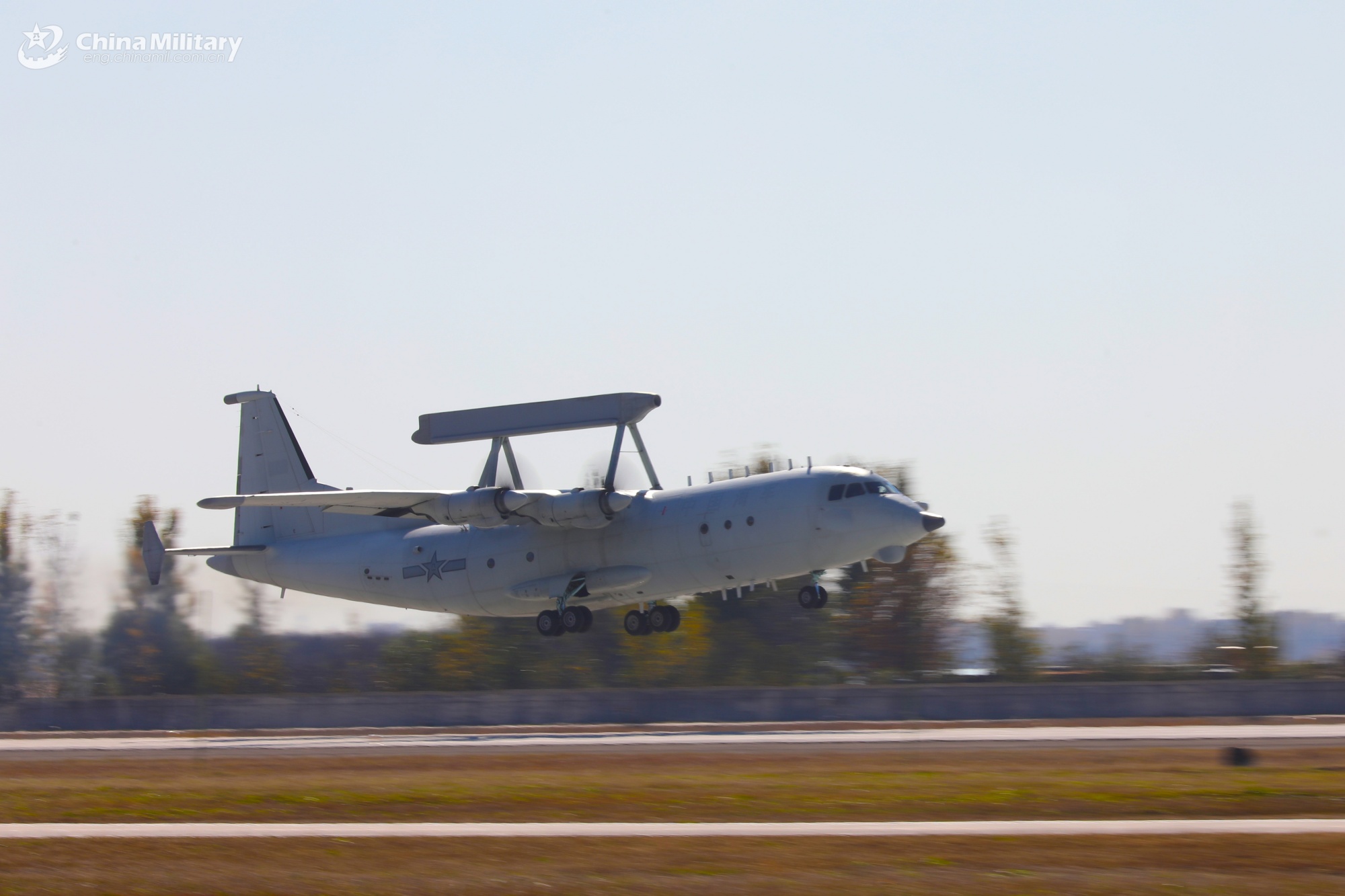 A KJ-500 airborne early warning (AEW) aircraft attached to an aviation unit under the Chinese PLA Navy soars into the sky during a flight training exercise on November 10, 2025. (eng.chinamil.com.cn/Photo by Xing Yun)